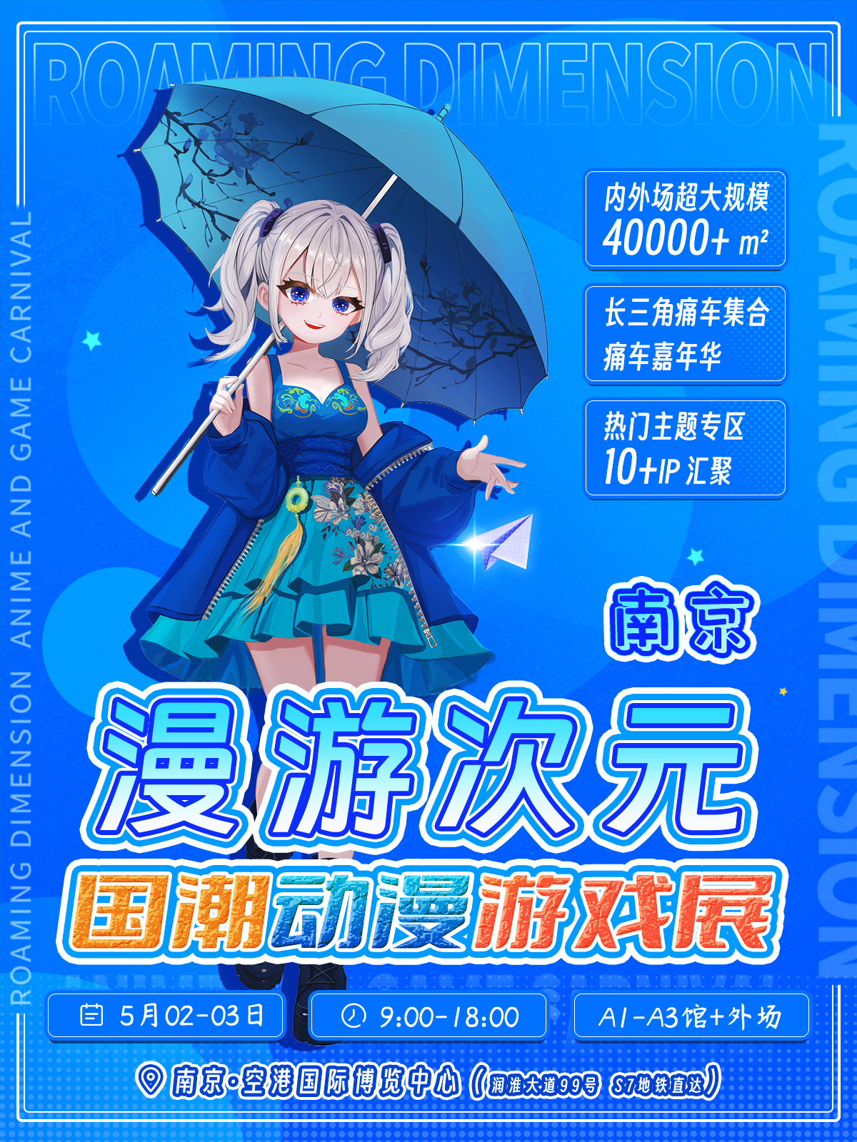 以“鼓励原创、发展产业、弘扬国产动漫游戏文化”为主旨,2025第二届漫游次元×国潮动漫游戏展即将于2025年5月2日至3日在南京·空港国际博览中心举办,本次漫展旨在为广大动漫游戏爱好者打造一场盛大的二次元盛会,也为动漫游戏产业链上下游企业、面向青少年群体的品牌打造一个促进交易、交流与互动的大型漫展平台。本次展会内外场整体展出面积约40000平,预期将吸引超2万+名二次元爱好者参与其中,届时,多个知名动漫游戏IP将汇聚现场,众多知名Coser也将应邀亮相,长三角地区规模最大的痛车文化展区、10大主题Only展区、品牌互动展区全天开放,我们诚挚地邀请您报名参展,共同为大家呈现一场精彩纷呈的青年文化盛宴。