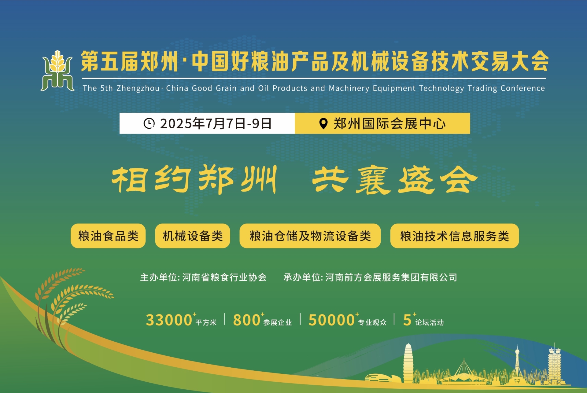 为落实“优质粮食工程”行动计划,以保障粮食和重要农产品稳定安全供给为主线,以全方位夯实粮食安全根基为方向,以全面提高粮油供给质量为目标,引导行业走品质品牌科技创新发展之路,加快推动粮油食品产业高质量发展,增强省际和地区间的粮油经贸合作,助力粮油企业之间的协作交流,展示粮食产业发展水平和优质粮食工程成果。为满足消费者对优质粮油产品的需求,加快推动粮油食品产业高质量发展,助力粮油企业之间的协作交流,展示优质粮油产品及机械设备。由河南省粮食和物资储备局指导,河南省粮食行业协会主办,河南前方会展服务集团有限公司承办的“第五届郑州·中国好粮油产品及机械设备技术交易大会”将于2025年7月7-9日在郑州国际会展中心举办。 交易会以提升粮油品牌影响力和市场占有率,加速全国粮油流通,助推粮食产业经济高质量发展为宗旨,以专业化、品牌化、国际化的发展方向为粮油产品和机械设备企业开拓和巩固国内外市场、塑造品牌形象、扩大产品销售等提供最佳的交流贸易平台。