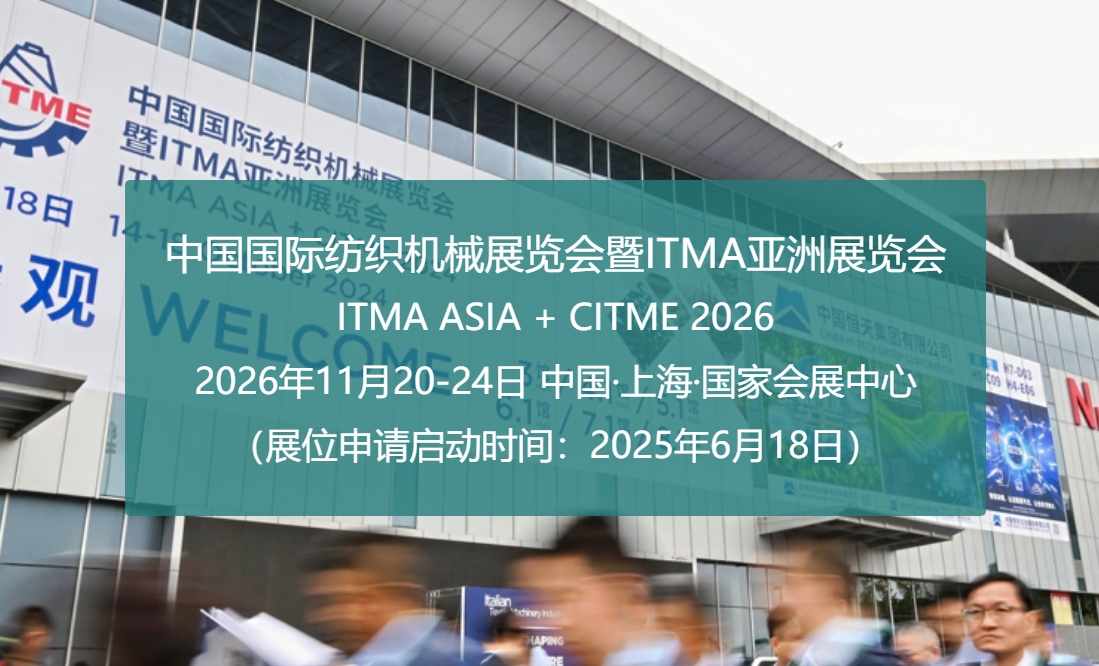 2026中国国际纺织机械展览会暨ITMA亚洲展览会将于2026年11月20-24日在国家会展中心(上海)举办。